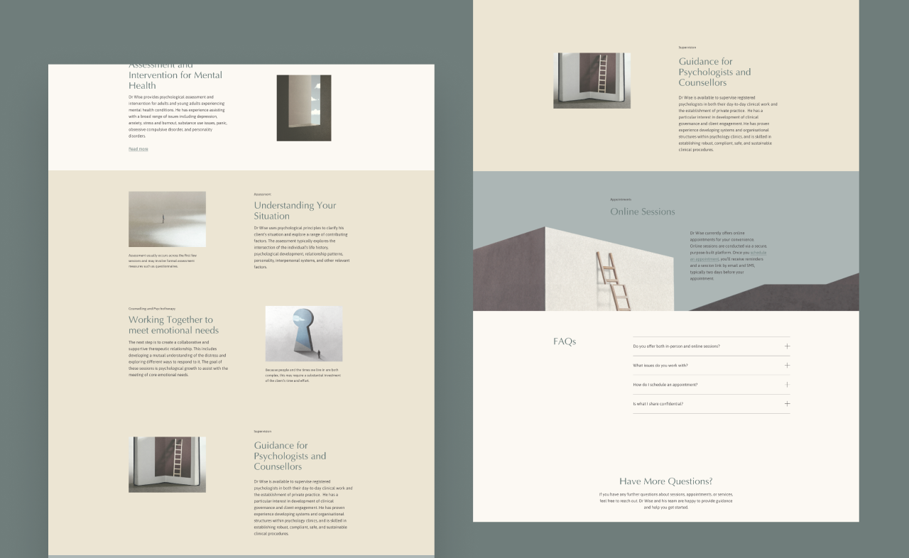 The final result is a calm, easy-to-use digital presence that supports trust and accessibility. Feedback highlighted the welcoming feel of the site, the clarity of the layout, and the overall simplicity of the experience.